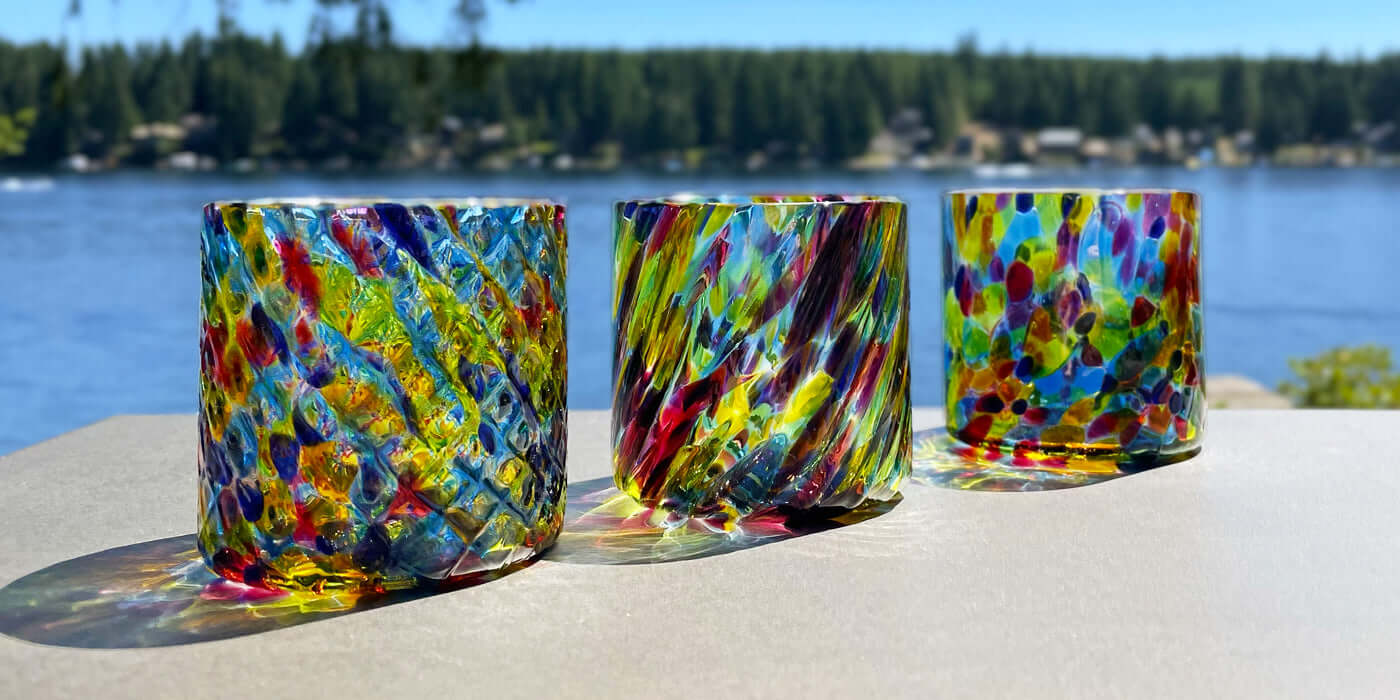 A bright collection of handmade drinkers that will bring a playful pop to your next happy hour.