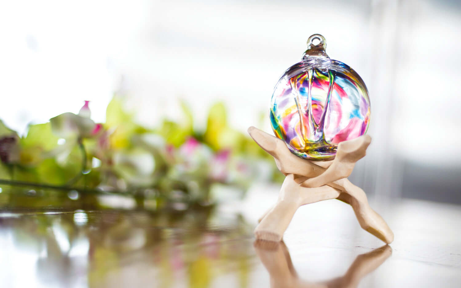 Delicate glass threads weave throughout each center, a beautiful representation of the positive spirit contained within.
